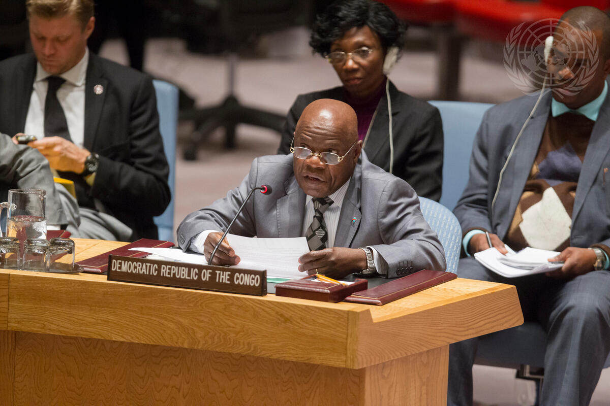 Ignace Gata Mavita wa Lufuta, Permanent Representative of the Democratic Republic of the Congo to the UN, addresses the Security Council meeting on the situation concerning his country.