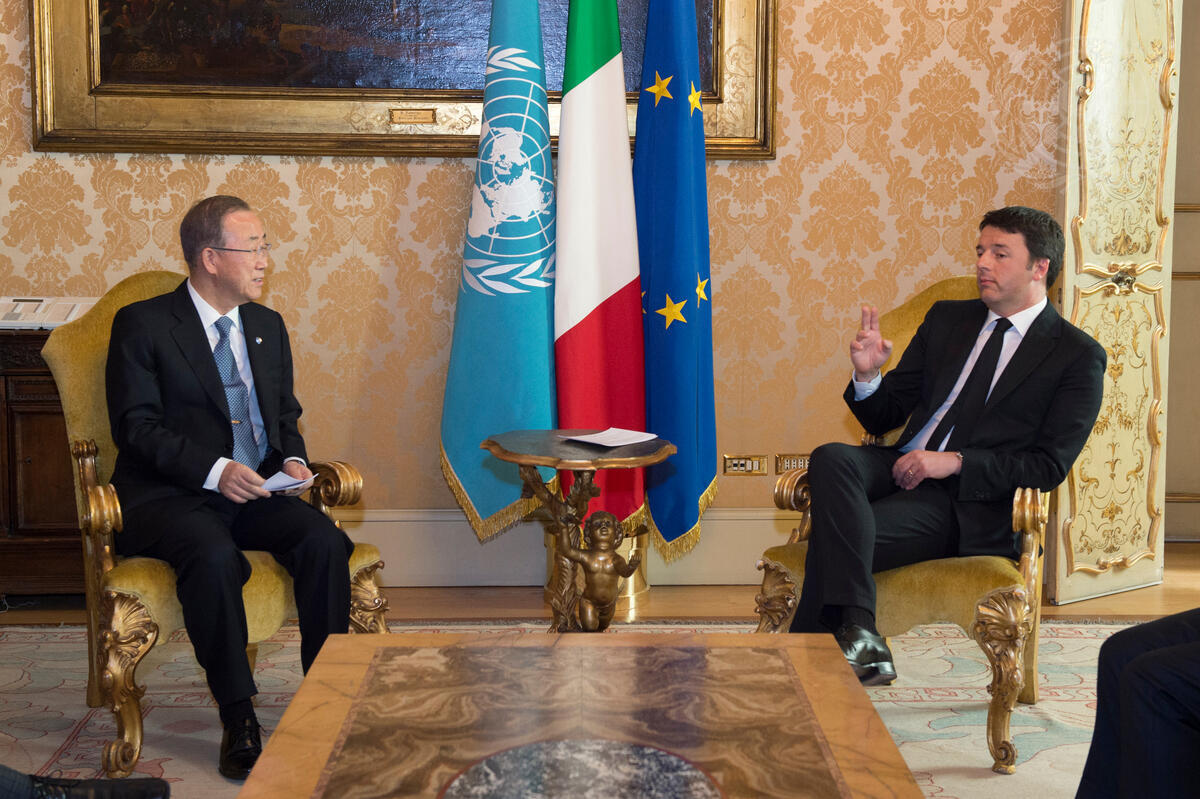 Secretary-General Ban Ki-moon (left) meets with Matteo Renzi, Prime Minister of Italy, in Rome.
