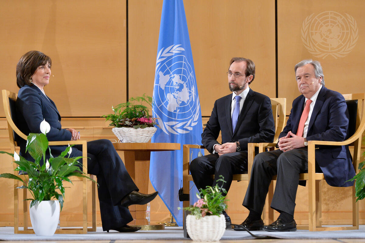 The 2015 Sergio Vieira de Mello debate, on the theme “Leadership Challenges in a World in Turmoil”, took place at the UN Office at Geneva (UNOG) on 12 March. The event was organized by the Sergio Vieira de Mello Foundation and the Graduate Institute of International and Development Studies (HEID), and was hosted by UNOG in cooperation with CNN. Featured speakers included Christiane Amanpour (left), Chief International Correspondent of CNN; Zeid Ra’ad Al-Hussein (centre), UN High Commissioner for Human Rights; and António Guterres (right), UN High Commissioner for Refugees.