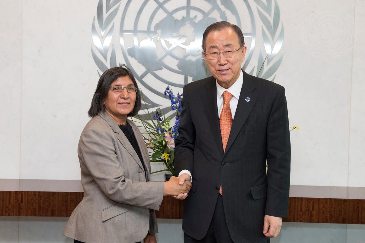 Secretary-General Ban Ki-moon (right) meets with Rashida Manjoo, UN Special Rapporteur on violence against women, its causes and consequences.