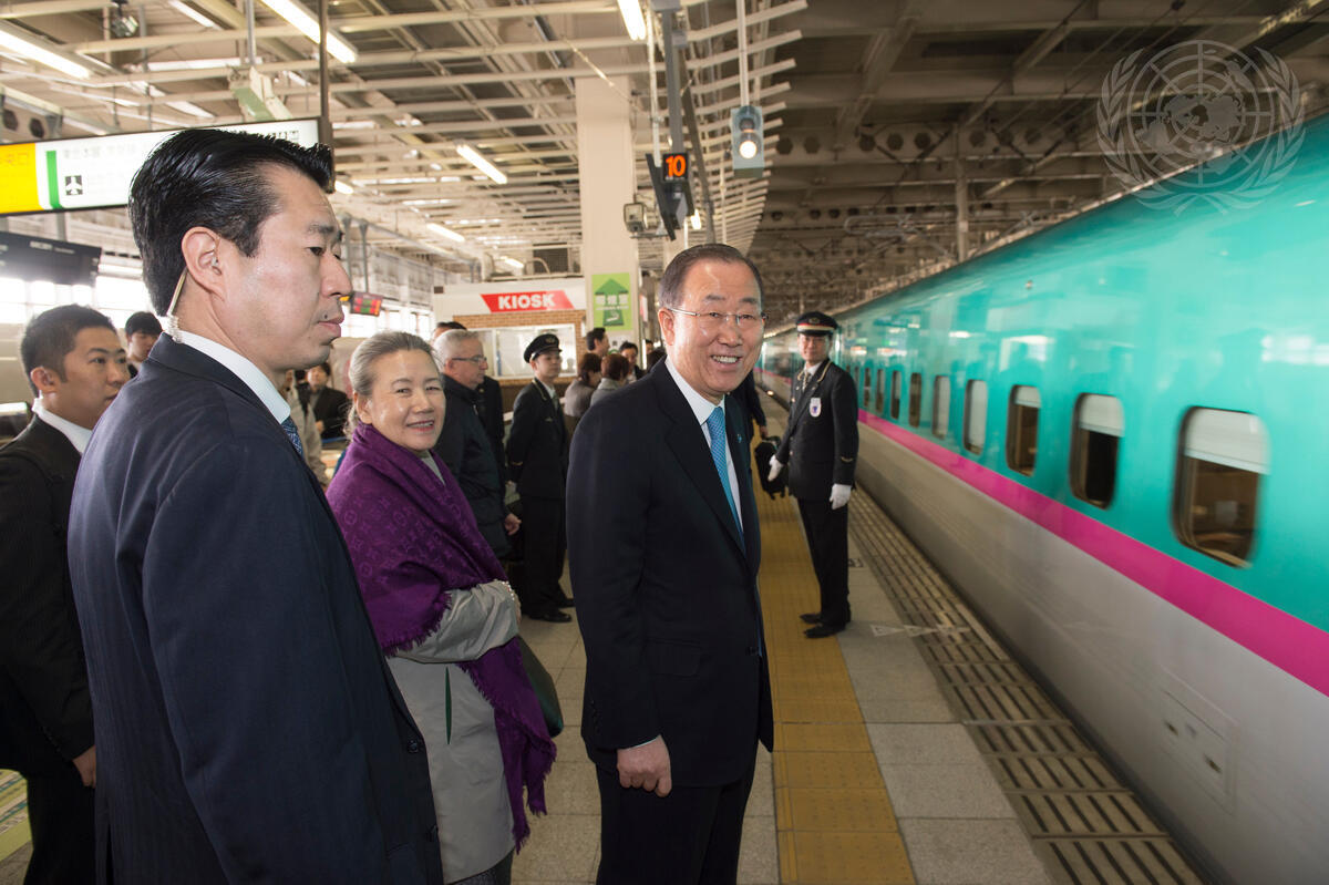 Secretary-General and Mrs. Ban Depart Sendai Via Bullet Train to Tokyo