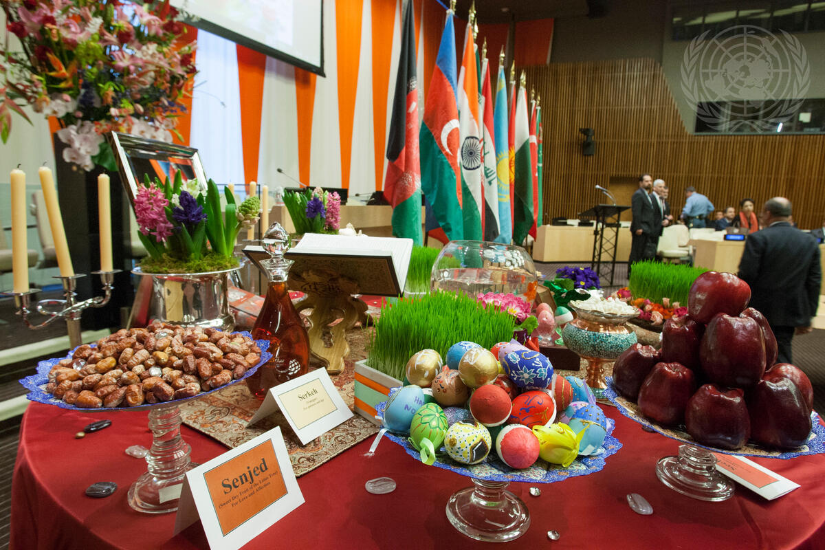 A view of treats offered during a special event on the occasion of the International Day of Nowruz (21 March). Nowruz marks the first day of spring and is celebrated on the day of the astronomical vernal equinox, which usually occurs on 21 March. It is celebrated as the beginning of the new year by more than 300 million people around the world and has been celebrated for over 3,000 years in the Balkans, the Black Sea Basin, the Caucasus, Central Asia, the Middle East and other regions.