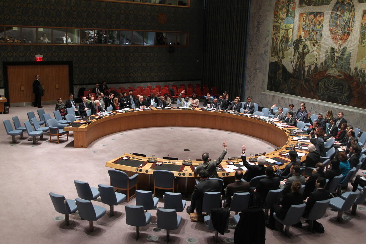 A view of the meeting, as Council members vote in favour of the draft resolution.
