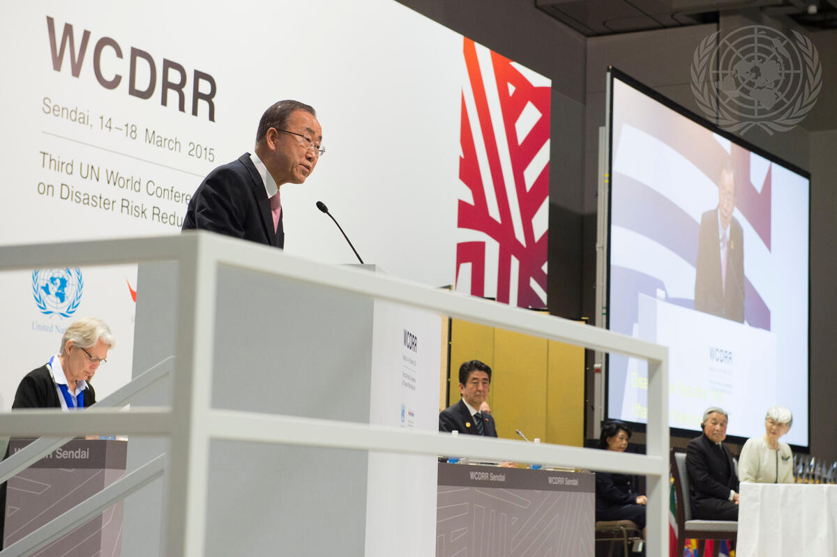 Secretary-General Ban Ki-moon delivers remarks before the start of the United Nations World Conference on Disaster Risk Reduction in Sendai, Japan.