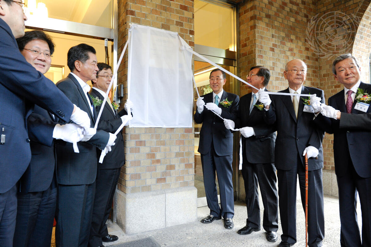 Secretary-General Ban Ki-moon (fourth from right) participates in the opening ceremony for the Seoul National University Global Health Centre.