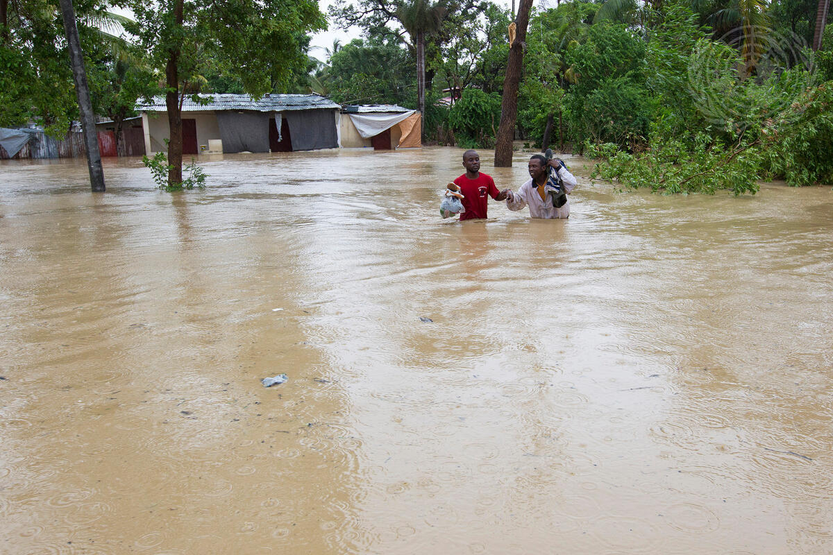 Residents of a low-lying area of Port-au-Prince flee their flooded homes taking whatever possessions they can.