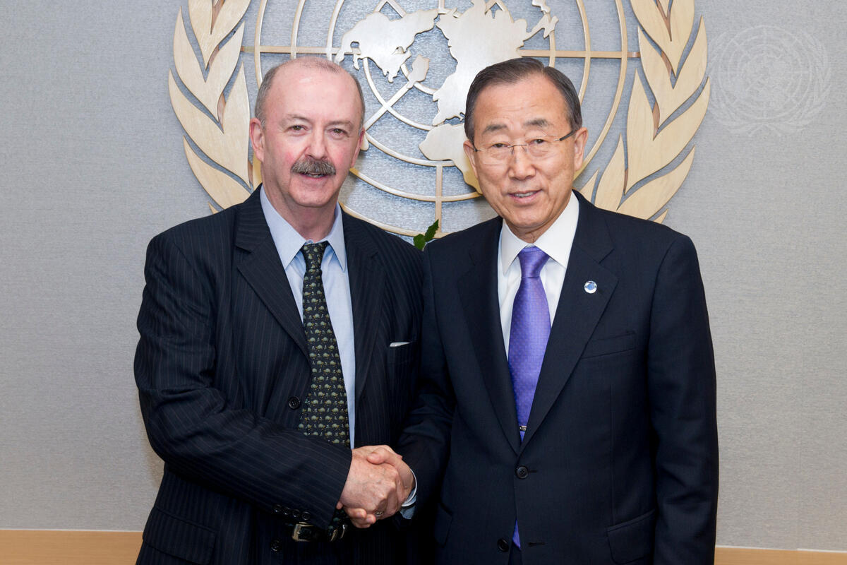 Secretary-General Ban Ki-moon (right) meets with Dr. Neal King, Secretary-General of the International Association of University Presidents (IAUP).