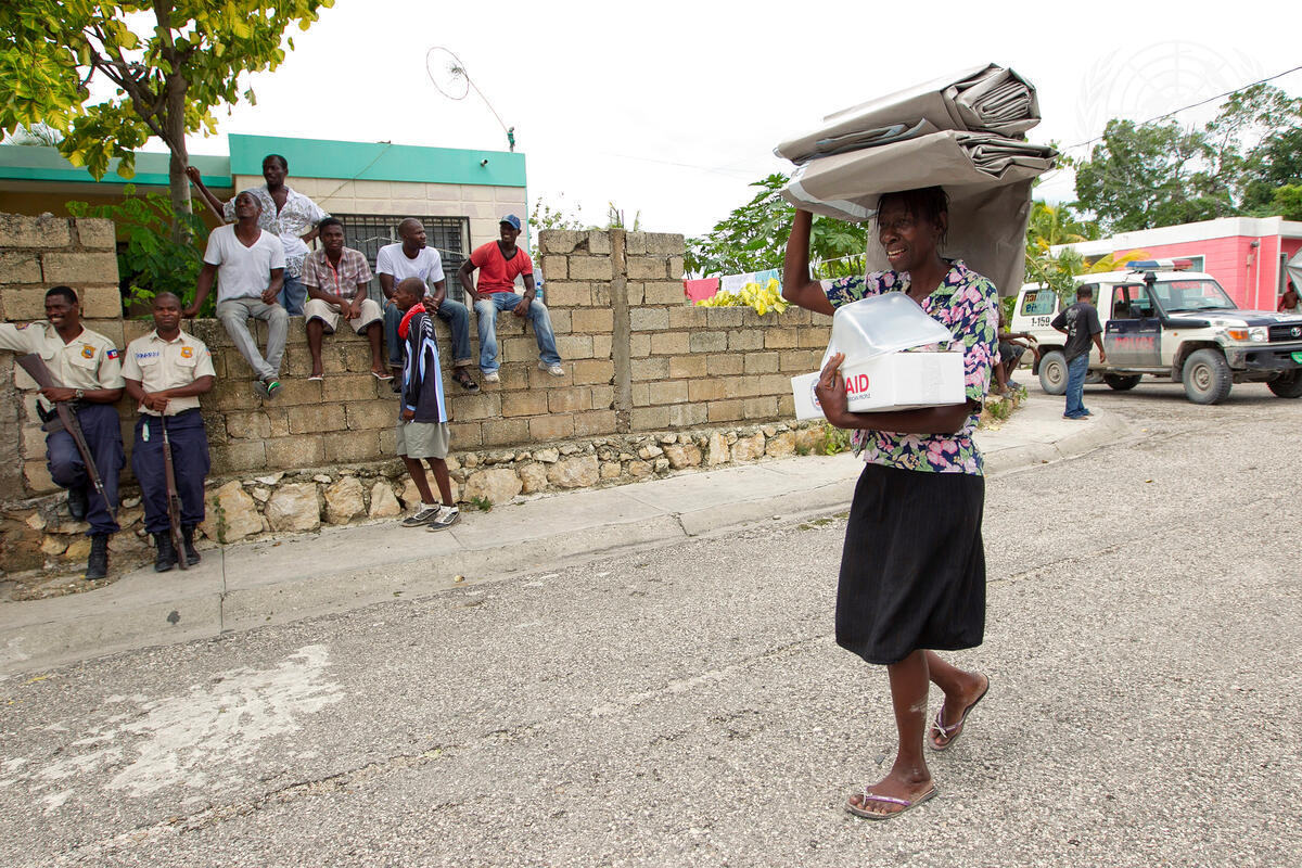 The International Organization for Migration (IOM) distributed jerry cans, tarps and other tent rebuilding materials to residents of camps for displaced people in the aftermath of Tropical Storm Isaac. The storm swept through Haiti on 25 August with high winds and heavy rains, flooding low-lying areas of the capital Port-au-Prince and the south and seriously damaging camps for people displaced by the January 2010 earthquake.