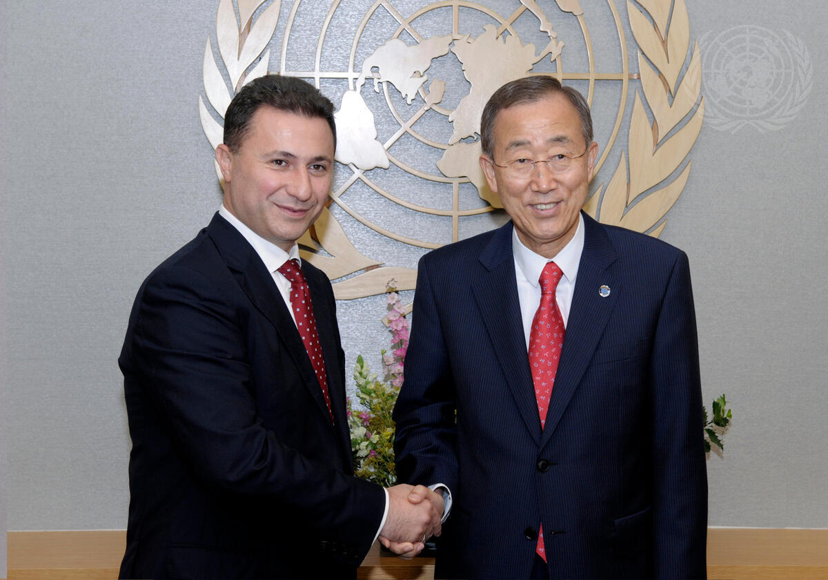 Secretary-General Ban Ki-moon (right) meets with Nikola Gruevski, Prime Minister of the former Yugoslav Republic of Macedonia.