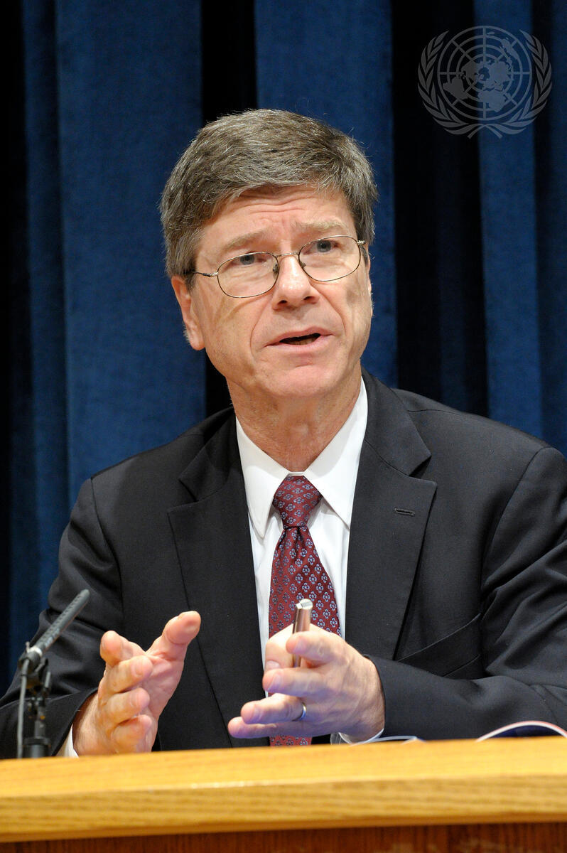 Jeffrey Sachs, the Secretary-General’s Special Adviser on the Millennium Development Goals (MDGs), Director of the Earth Institute at Columbia University, and Director of the Millennium Villages Project, briefs journalists on the Villages' progress toward the 2015 Goals, and on major new donor commitments for the project. At his press conference Mr. Sachs was joined by George Soros, Founder and Chairman of the Open Society Foundation.