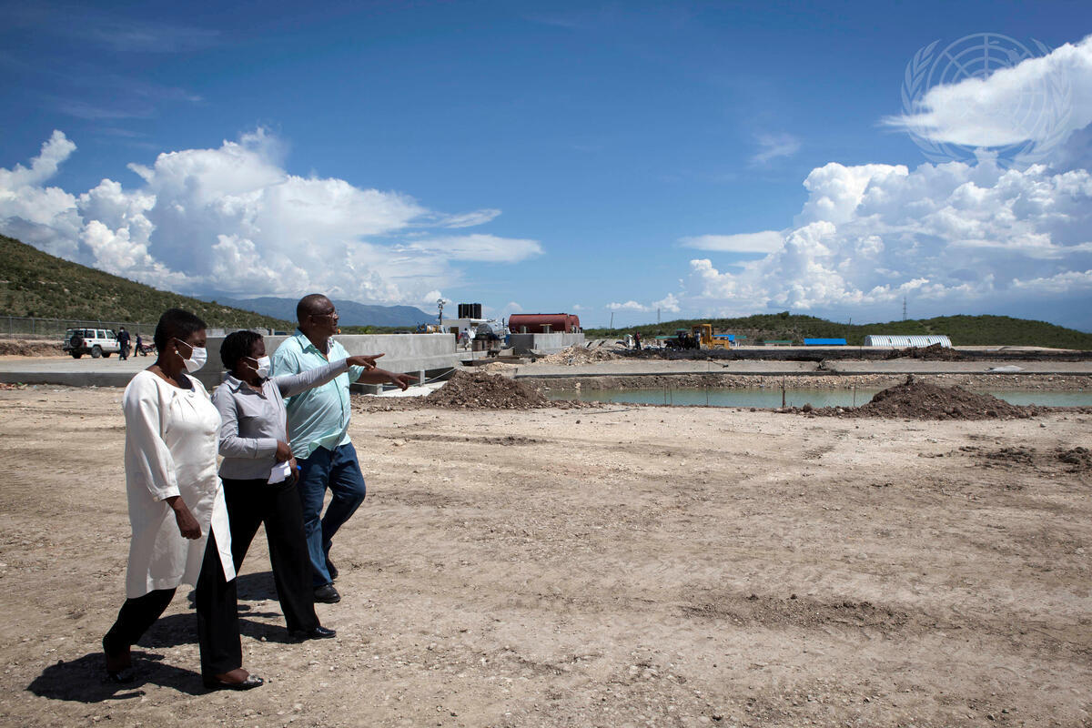 Valerie Amos (left), Under-Secretary-General for Humanitarian Affairs, tours a dump site for liquid waste funded with the support of the UN’s Central Emergency Response Fund (CERF), in Port-au-Prince.