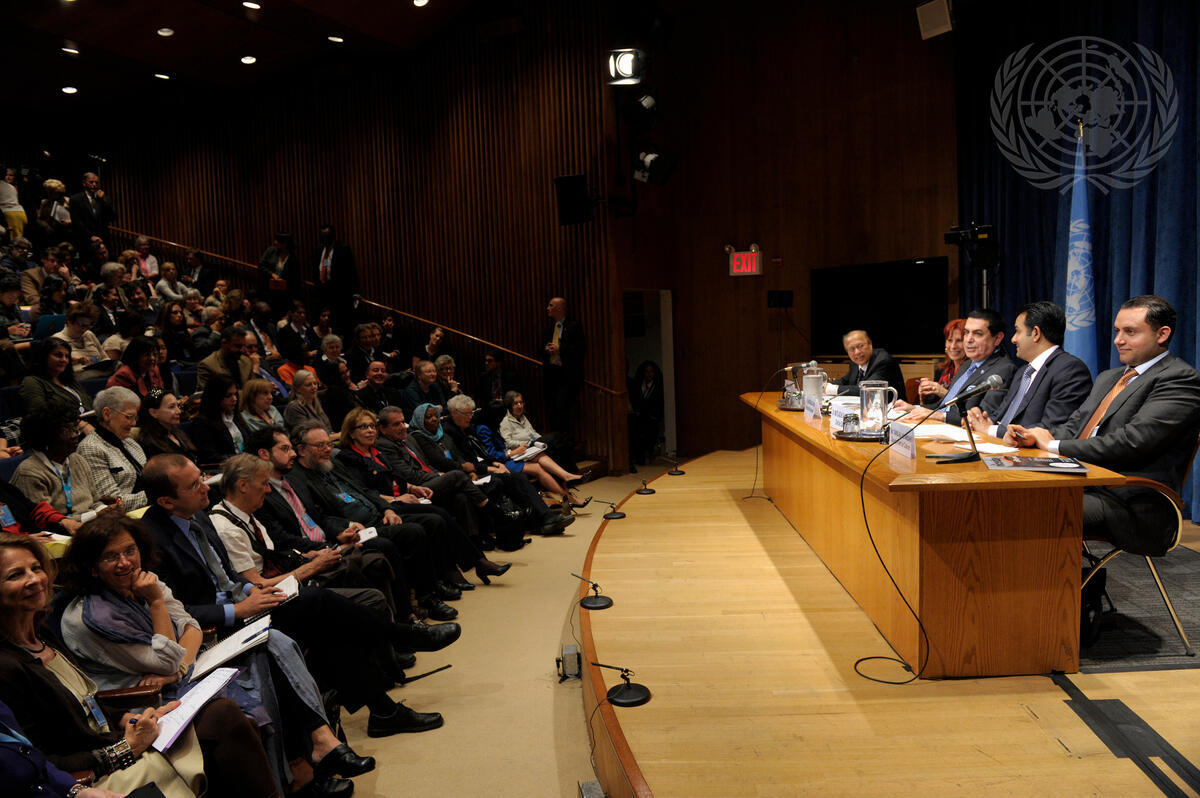 Nassir Abdulaziz Al-Nasser (centre right), President of the sixty-sixth session of the General Assembly, and members of his team meet with representatives of non-governmental organizations (NGOs).