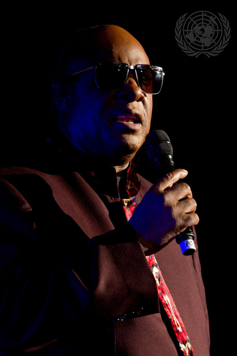 UN Messenger of Peace and American musical legend Stevie Wonder performs at this year’s UN Day Concert, “A Message of Peace”.