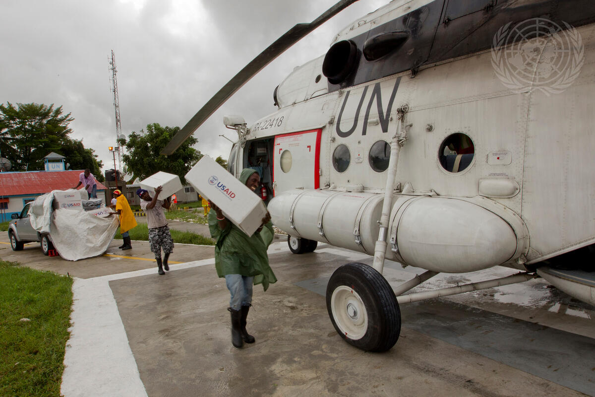 Hurricane Sandy passed to the west of Haiti on 25 October, causing heay rains and strong winds, flooding homes and overflowing rivers. Members of the UN Stabilization Mission in Haiti (MINUSTAH) prepare to deliver aid to residents of an island off the south west coast of Haiti.