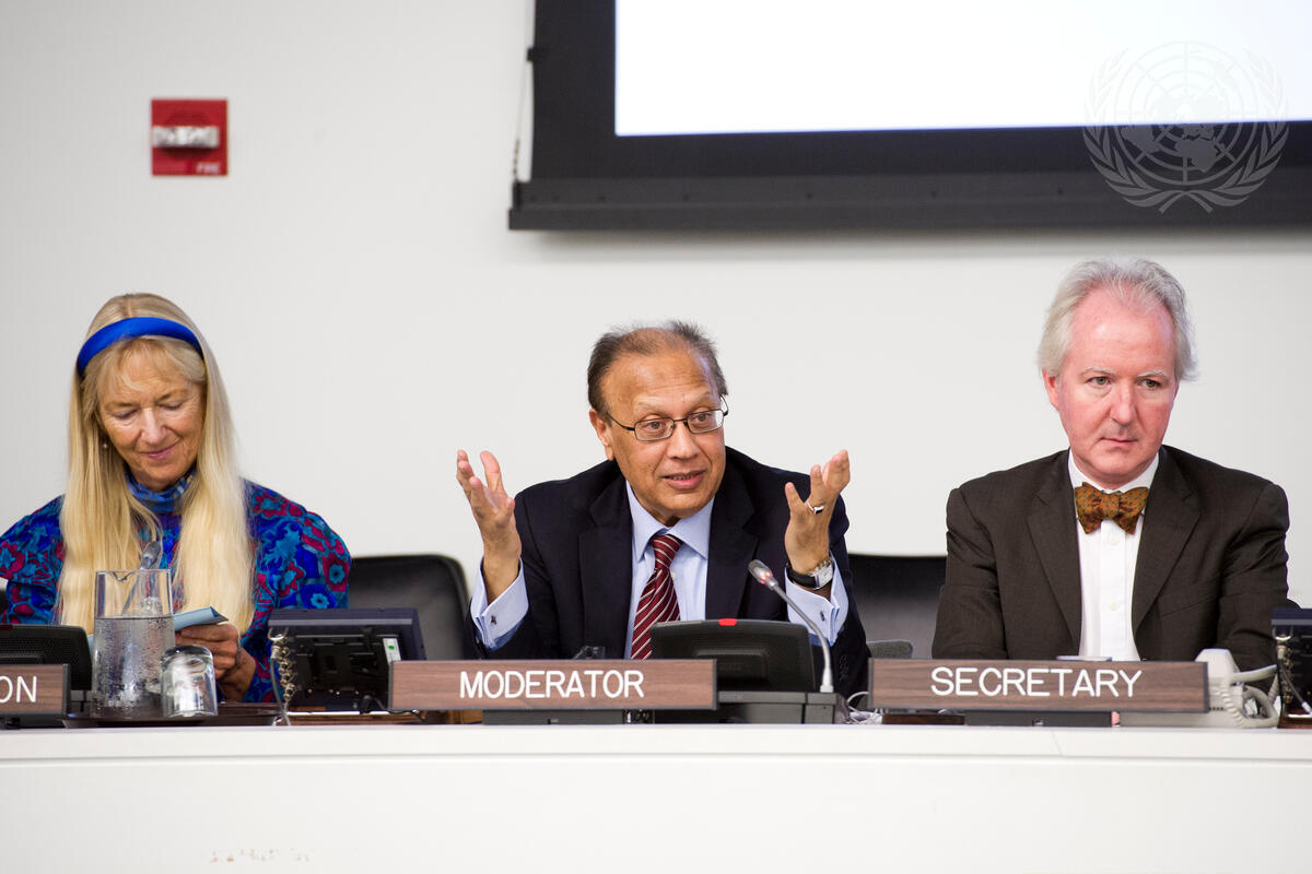 Anwarul K. Chowdhury, Senior Special Advisor to the President of the UN General Assembly and former Under-Secretary-General of the United Nations, moderates the discussion. Avon Mattison, President, Pathways to Peace (left), also spoke on the panel.