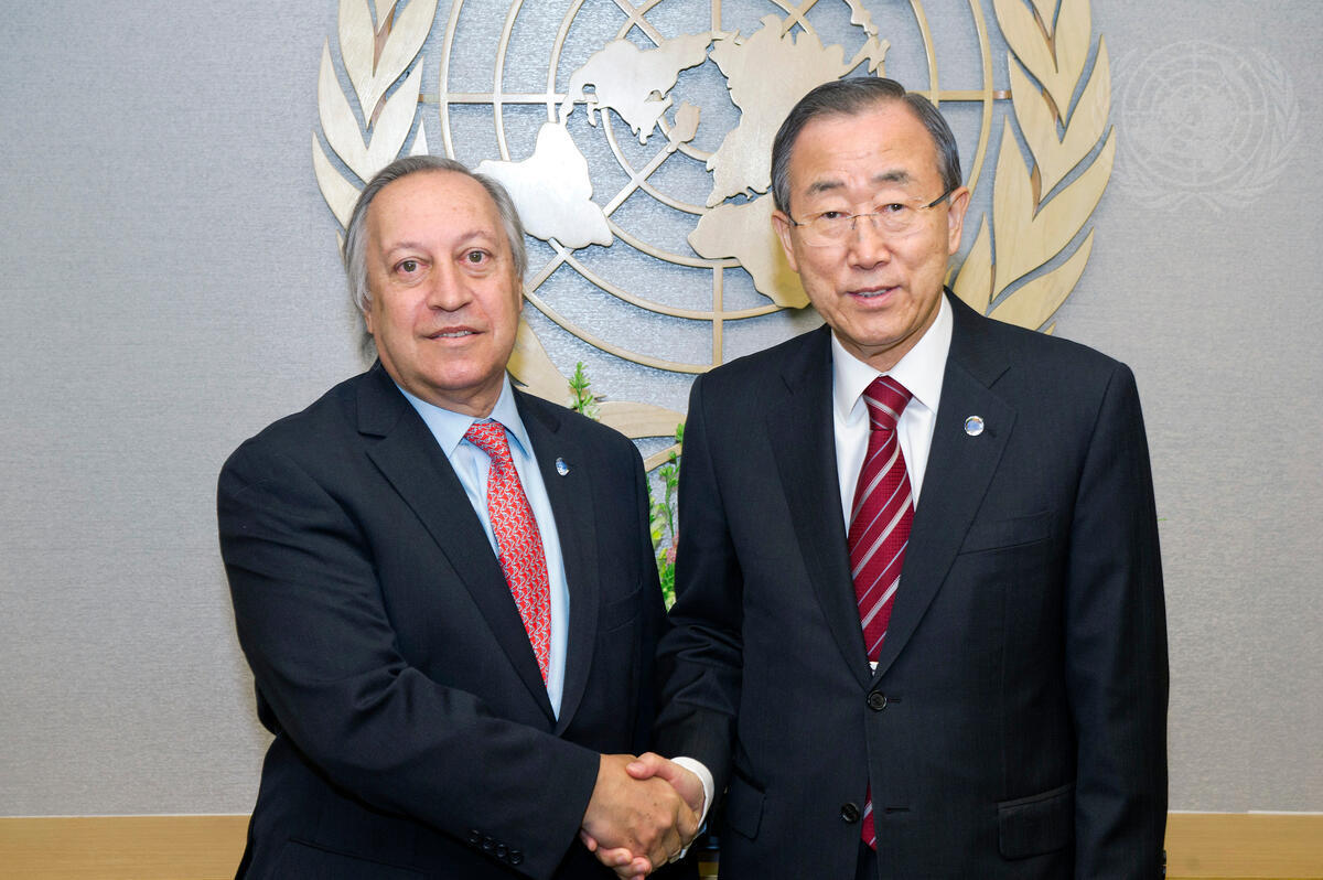 Secretary-General Ban Ki-moon (right) meets with Ernesto Baca, new Assistant Secretary-General for the Enterprise Resource Planning Project (ERP).