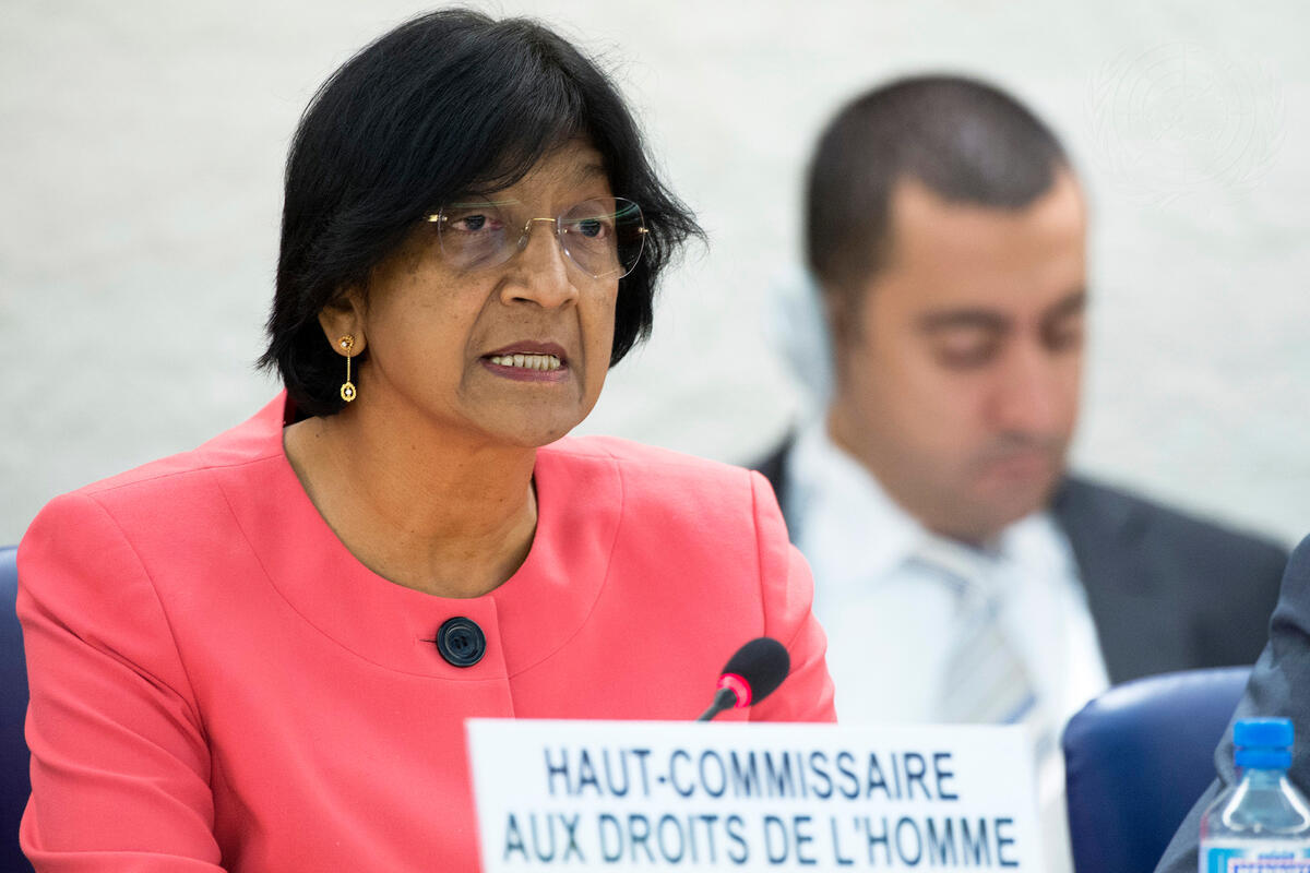 Navi Pillay, United Nations High Commissioner for Human Rights, addresses an interactive dialogue with Paulo Pinheiro, Chair of the Independent International Commission of Inquiry on the Syrian Arab Republic. The Commission presented its report to the Council.