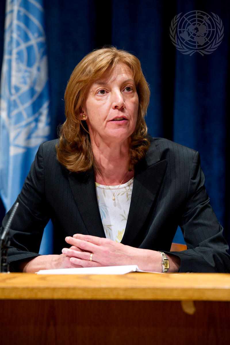 Gabriele Goettsche-Wanli, Chief of the UN Treaty Section in Office of Legal Affairs (OLA), speaking at a press conference on the upcoming 2012 Treaty Event and High-Level Meeting on the Rule of Law.
