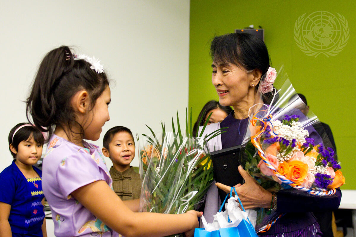 Aung San Suu Kyi (right), Chairperson and General Secretary of the National League for Democracy of Myanmar, met with members the UN Staff Recreation Council Myanmar Club and their families.