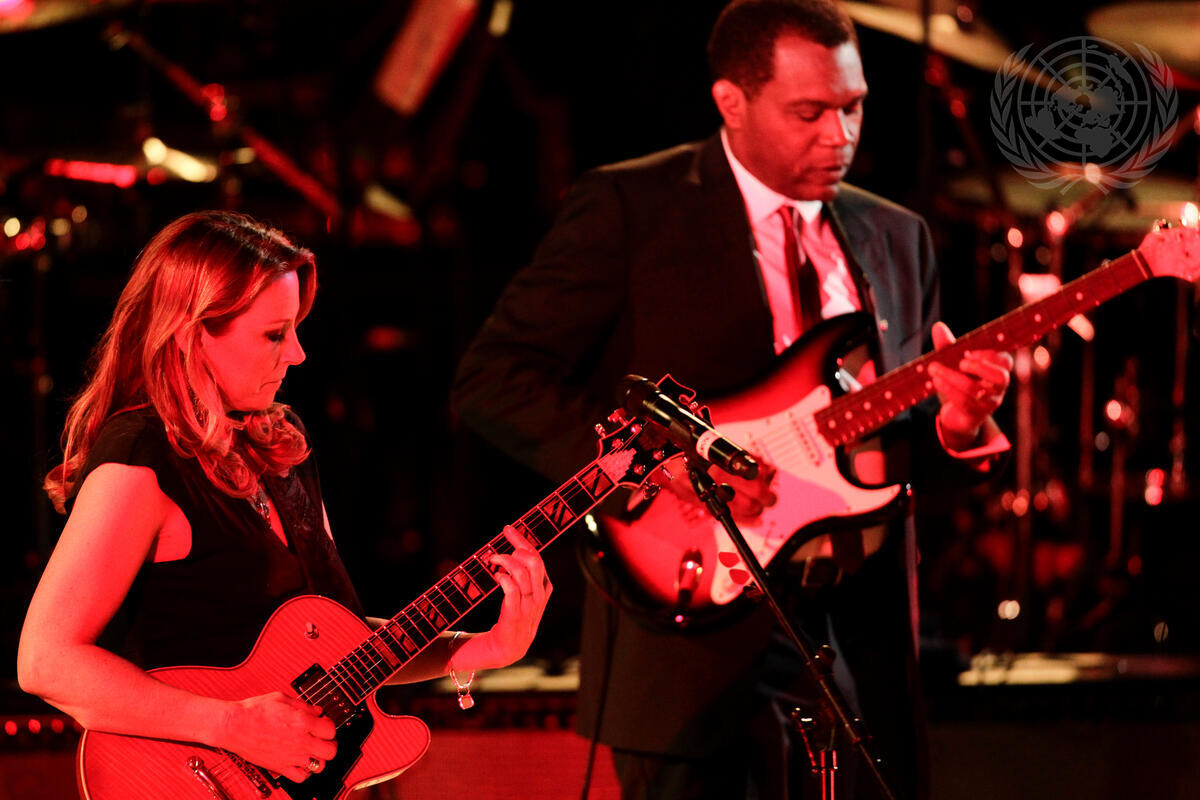Guitarists Susan Tedeschi (left) and Robert Cray perform at the inaugural International Jazz Day Concert at UN Headquarters. The all-star concert, jointly organized by the UN Educational, Scientific and Cultural Organization (UNESCO) and the Thelonious Monk Institute, caps off a series of Jazz Day events which saw celebrations at UNESCO’s headquarters in Paris on 27 April, and at sunrise today in New Orleans.