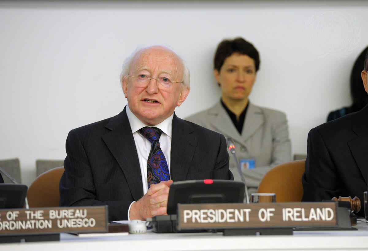 President of Ireland Michael D. Higgins, who is also a former broadcaster, addresses this year’s World Press Freedom Day event at UN Headquarters.