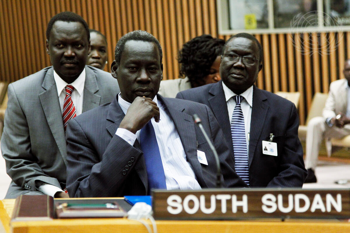 Minister of Cabinet Affairs of South Sudan, Deng Alor Kuol (centre), is pictured during the meeting.