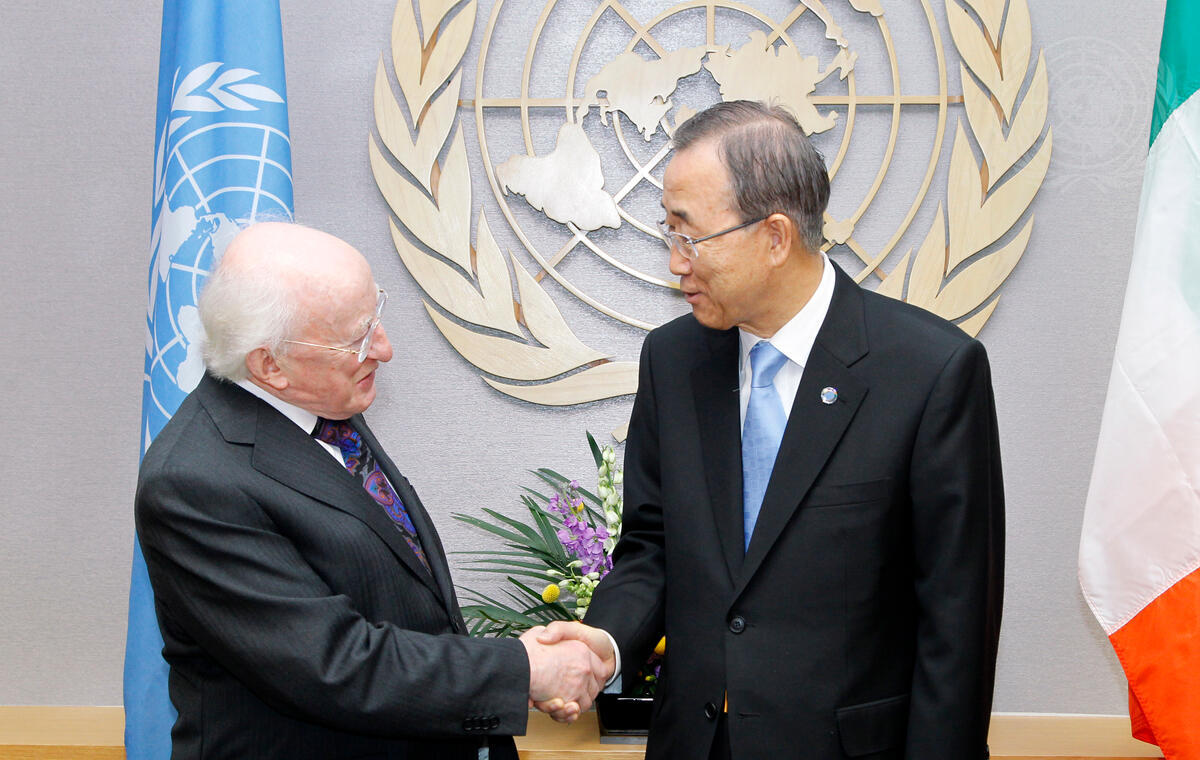 Secretary-General Ban Ki-moon (right) meets with Michael D. Higgins, President of Ireland.