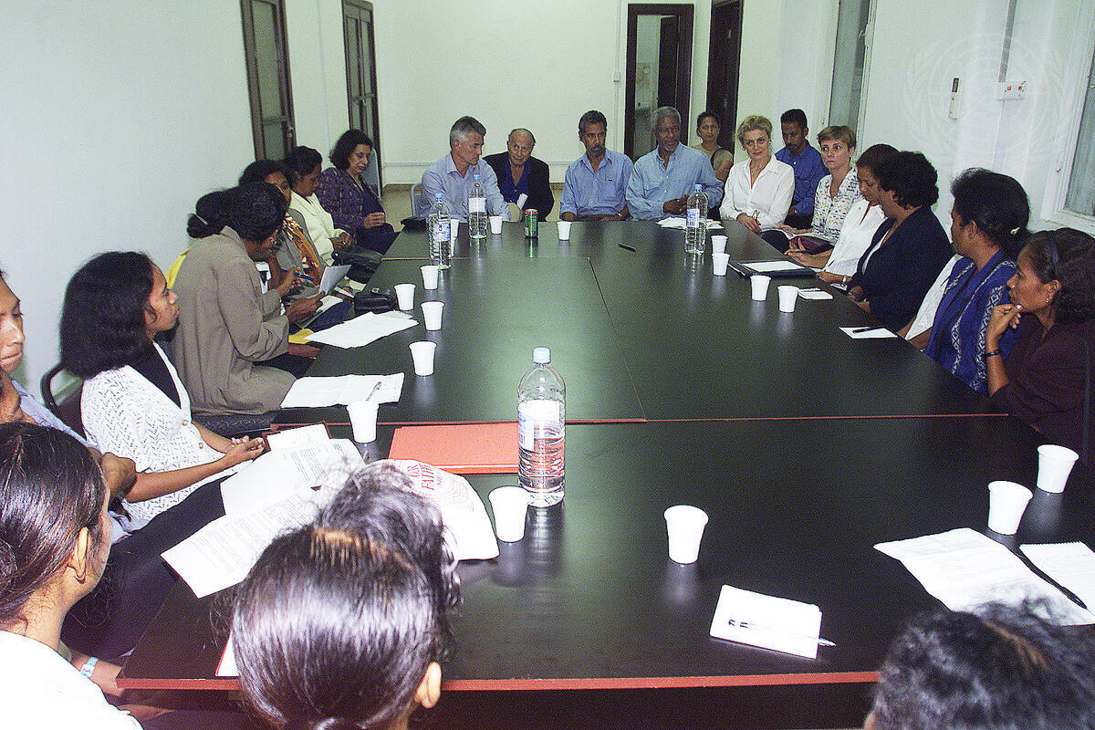 Secretary-General Kofi Annan and Mrs. Nane Annan (background, at table on right) attending a meeting with key Women's Groups in East Timor.