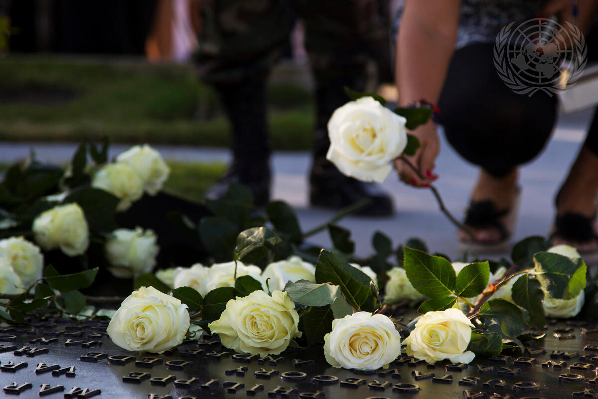 The United Nations Stabilization Mission in Haiti (MINUSTAH) paid tribute to its 102 staff members who died during the earthquake which struck Haiti on 12 January 2010, killing some 220,000 people and making 1.5 million others homeless, in addition to causing widespread destruction. On the eve of the earthquake’s third anniversary, MINUSTAH’s staff and the families and friends of victims laid a hundred white roses on the earthquake’s memorial located on MINUSTAH grounds.