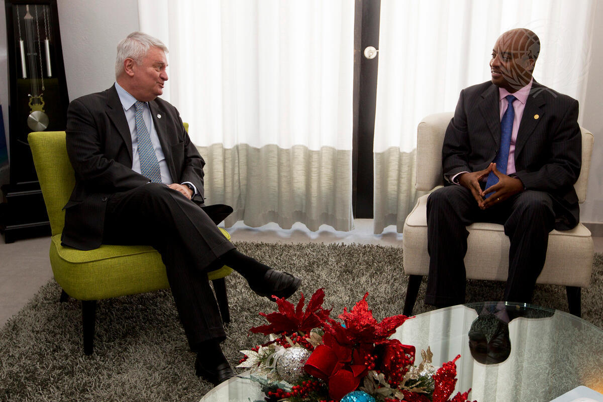 Hervé Ladsous (left), Under-Secretary-General for Peacekeeping Operations, meets with Pierre Richard Casimir, Minister for Foreign Affairs of Haiti.