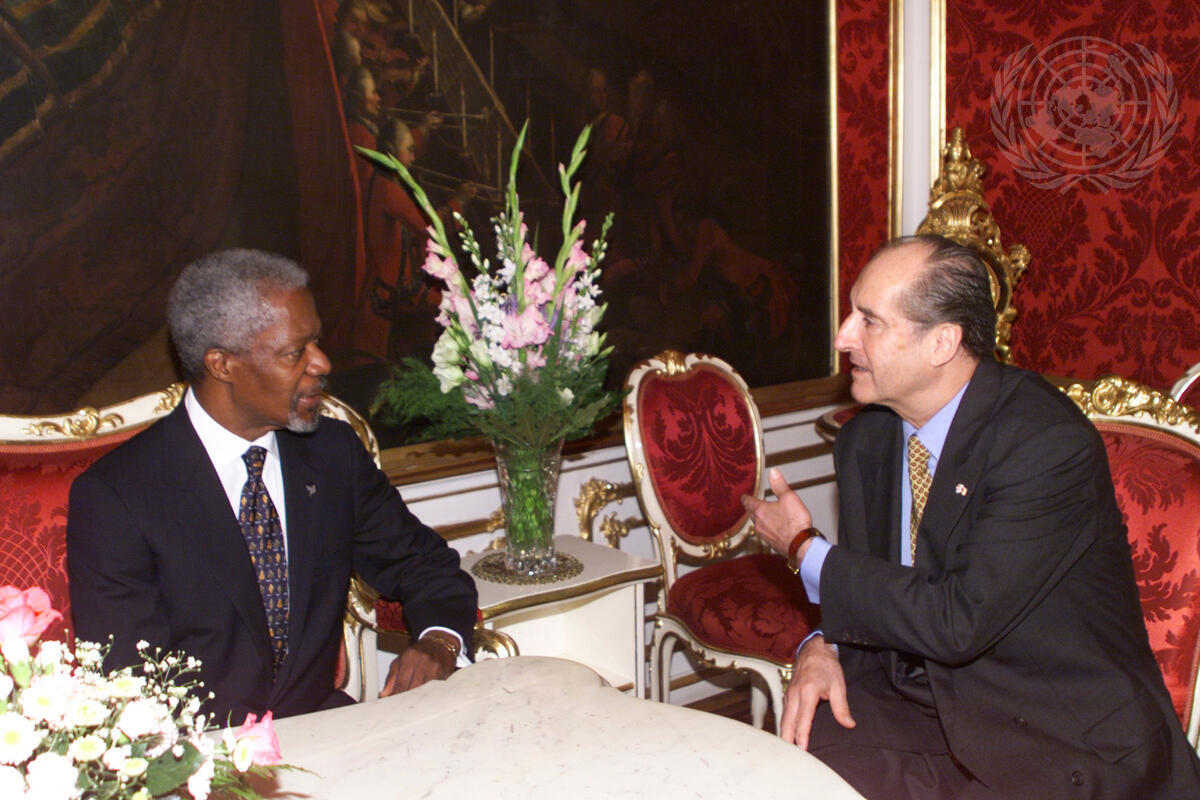 Secretary-General Kofi Annan (left) with Thomas Klestil, President of Austria, at the Hofberg Palace.