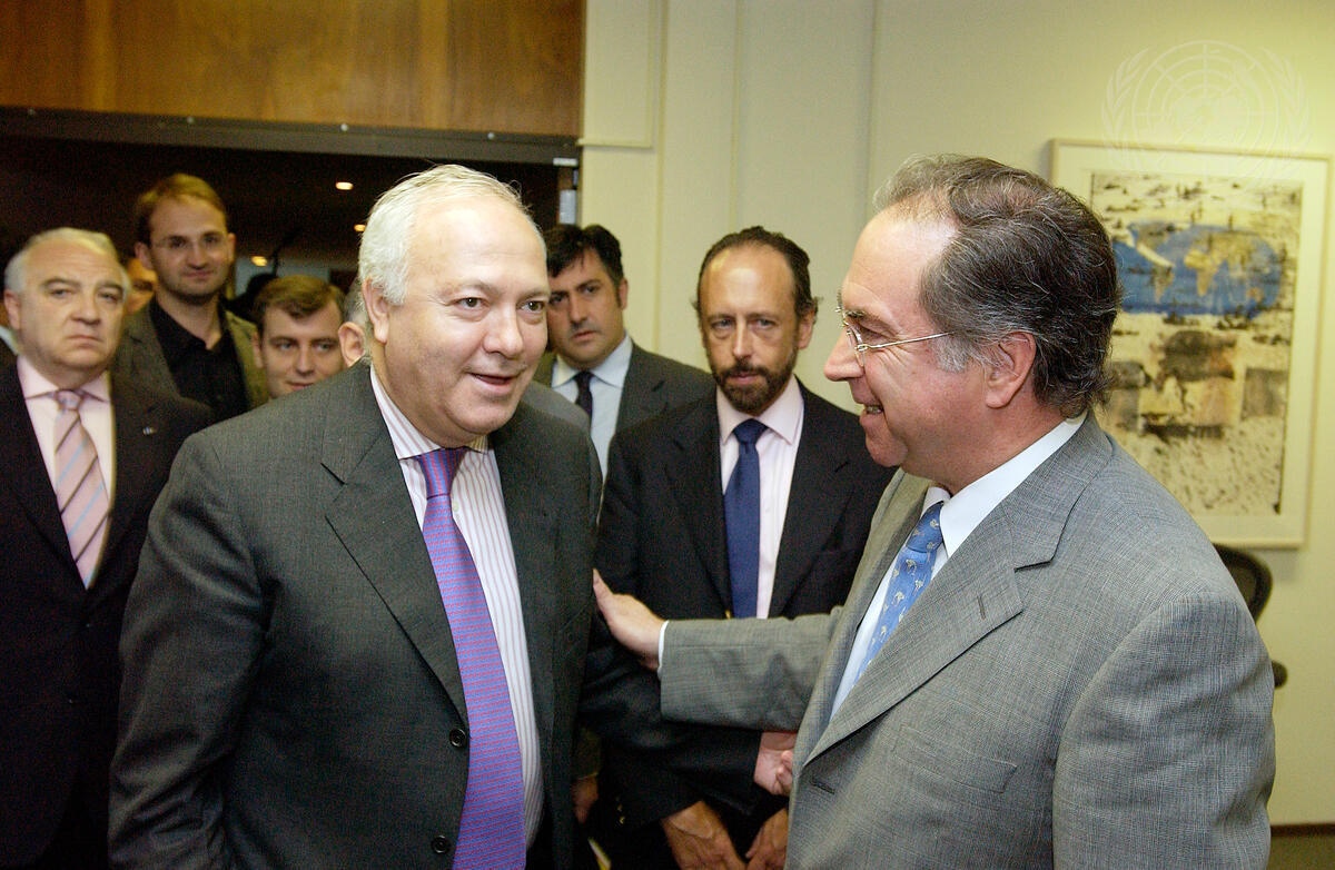 Juan Gabriel Valdes (right), Special Representative and Head of United Mission in Haiti meets with Miguel Angel Moratinos Cuyaube, Foreign Minister of Spain.