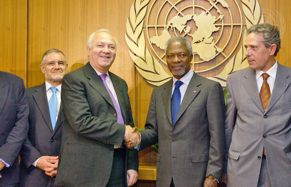 Secretary-General Kofi Annan (second from right) meets with Miguel Angel Moratinos Cuyaube, Foreign Minister of Spain and parliamentarians from Spain.
