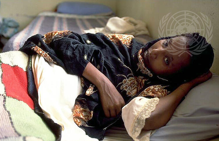 A young woman sick with AIDS lies in her bed at the Mother Teresa Home for Women and Children with AIDS in Addis Abeba.