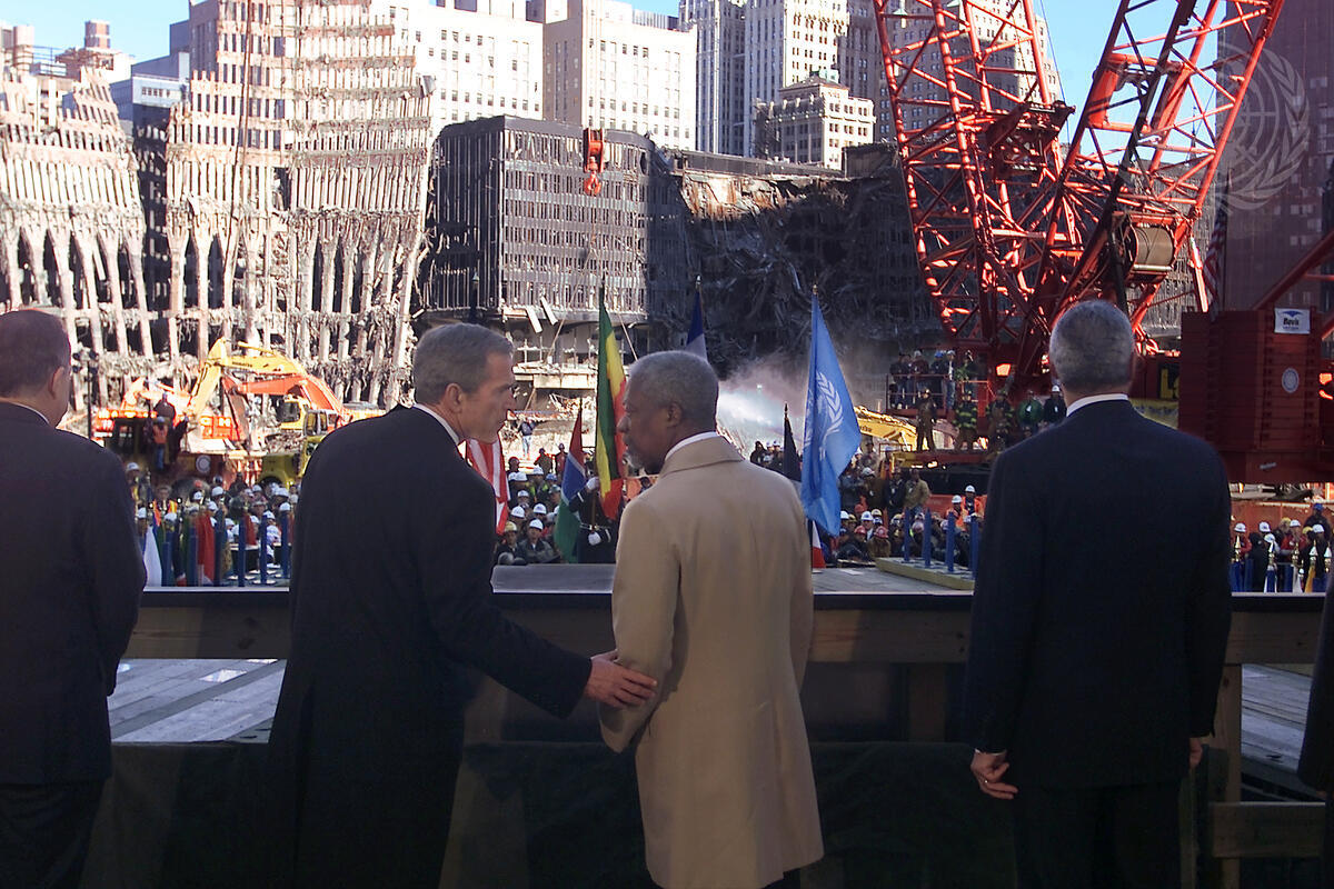 Secretary-General and U.S. President Visit Ground Zero of Terror Attacks