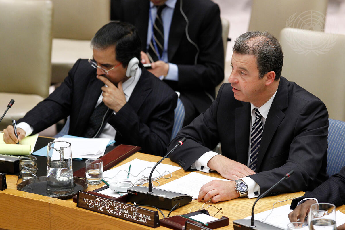 Serge Brammertz (right), Prosecutor of the International Criminal Tribunal for the former Yugoslavia (ICTY), briefs the Security Council.