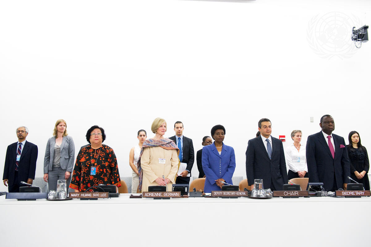 From left: Mary Huang Soo Lee, representing the Federation of Reproductive Health Associations of Malaysia, this year's institutional laureate; reproductive health advocate Adrienne Germain, winner of the individual award; Deputy Secretary-General Asha-Rose Migiro; Mootaz Ahmadein Khalil (Chair), Permanent Representative of Egypt to the UN; and Babatunde Osotimehin (far right), Executive Director of the UN Population Fund (UNFPA)