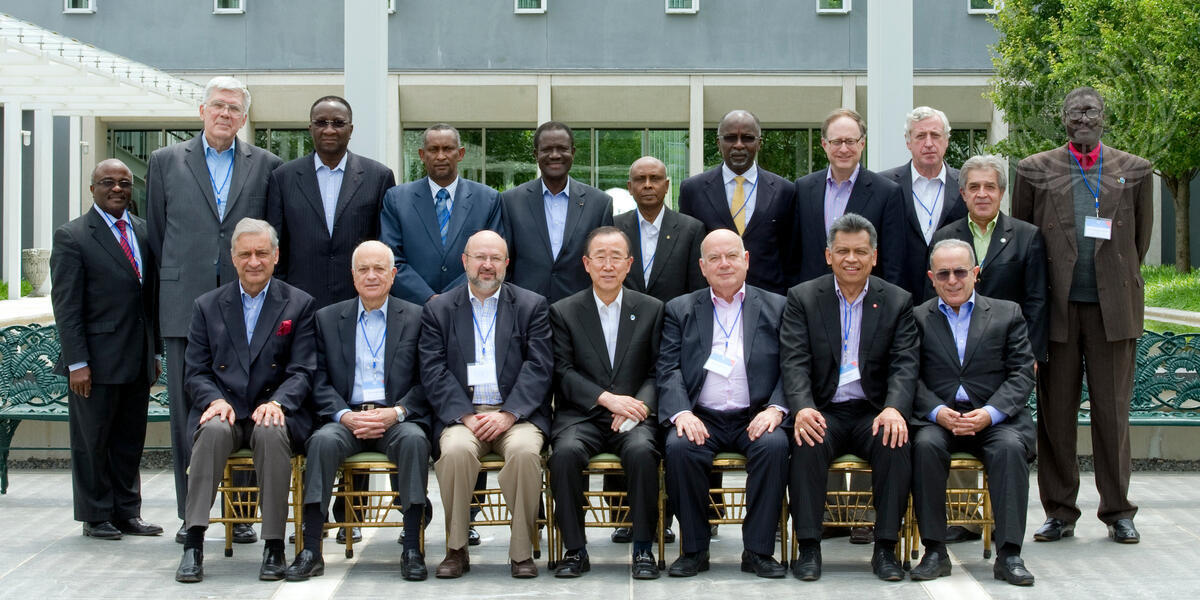 Secretary-General Ban Ki-moon (front, centre) takes a group photo with the heads of various regional and other peace and security organizations at a retreat he is hosting provide an opportunity for informal and frank exchange of views and experiences between the United Nations and its regional partners.