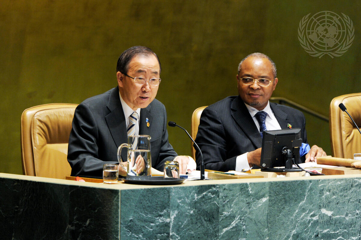 Secretary-General Ban Ki-moon (left) addresses the General Assembly’s meeting on the implementation of the Declaration of Commitment on HIV/AIDS and the Political Declarations on HIV/AIDS.