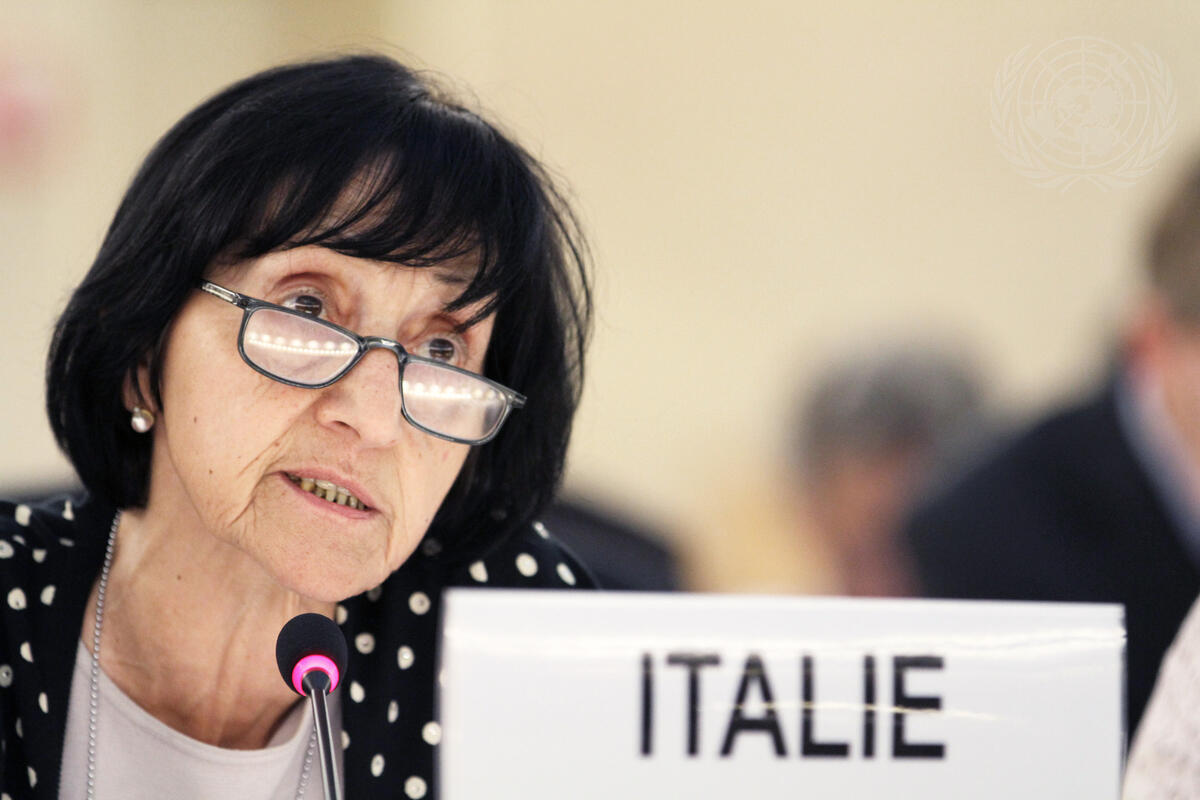 Laura Mirachian, Permanent Representative of Italy to the UN Office at Geneva (UNOG), addresses the Human Rights Council’s special session on the deteriorating human rights situation in Syria and the recent killings in El-Houleh.