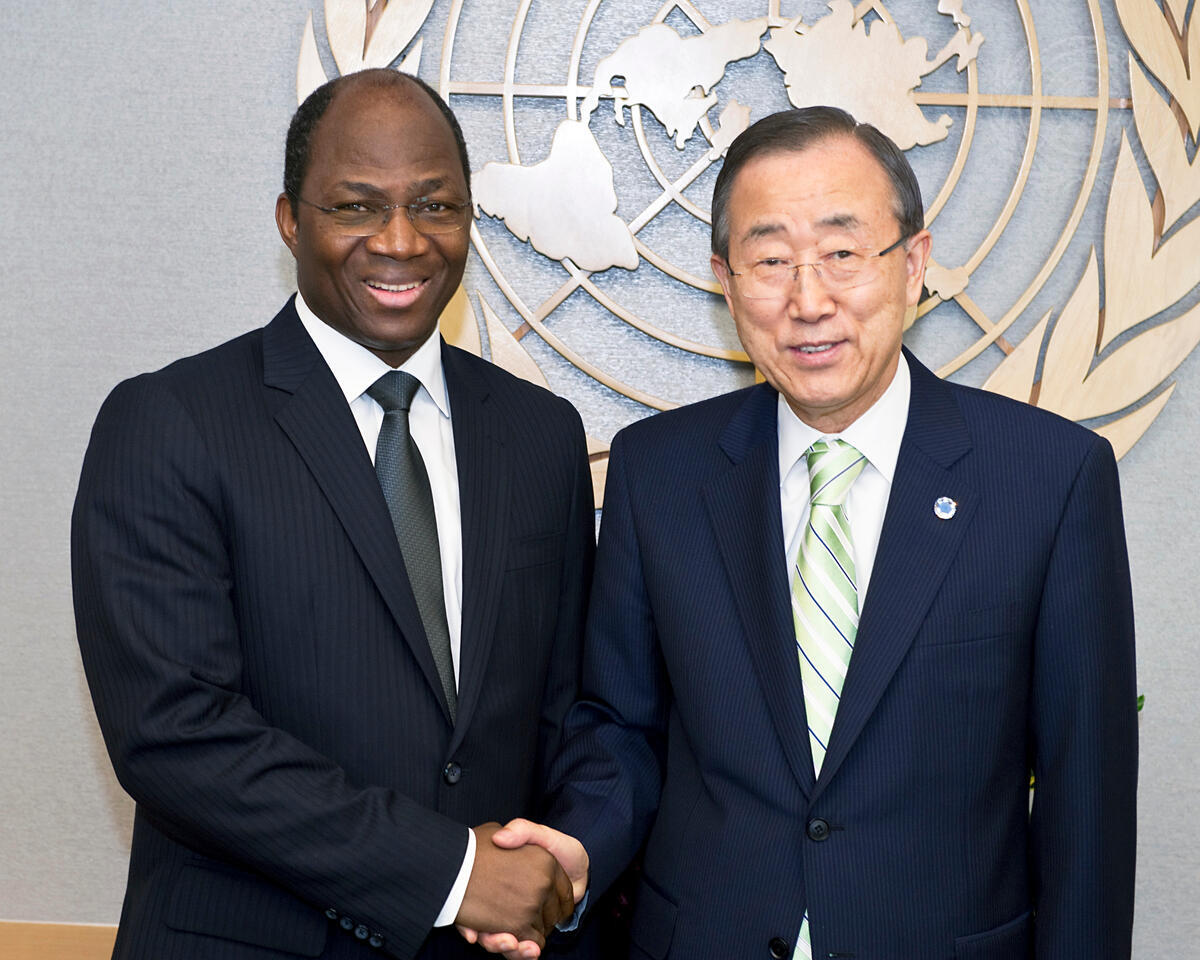 Secretary-General Ban Ki-moon (right) meets with Djibrill Ypènè Bassolé, Minister for Foreign Affairs of Burkina Faso.