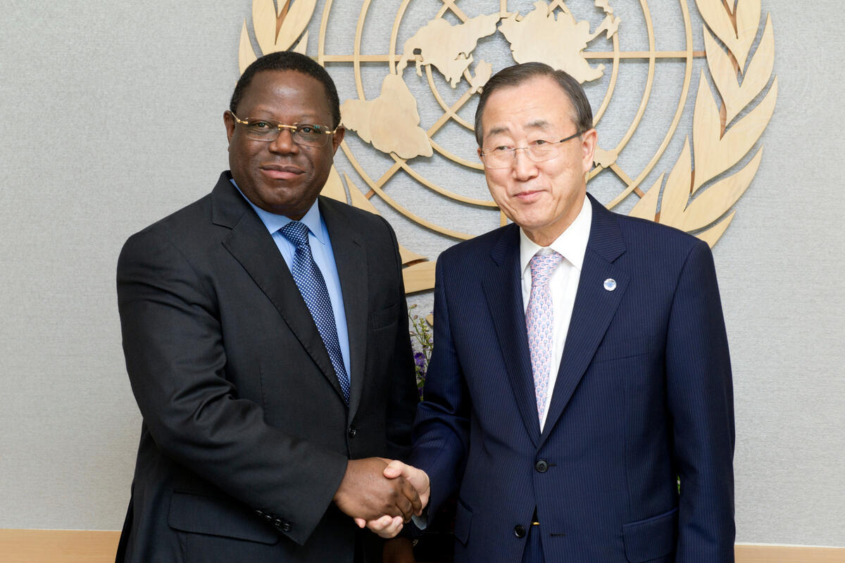 Secretary-General Ban Ki-moon (right) meets with Emmanuel Issoze-Ngondet, Minister for Foreign Affairs of the Gabonese Republic.