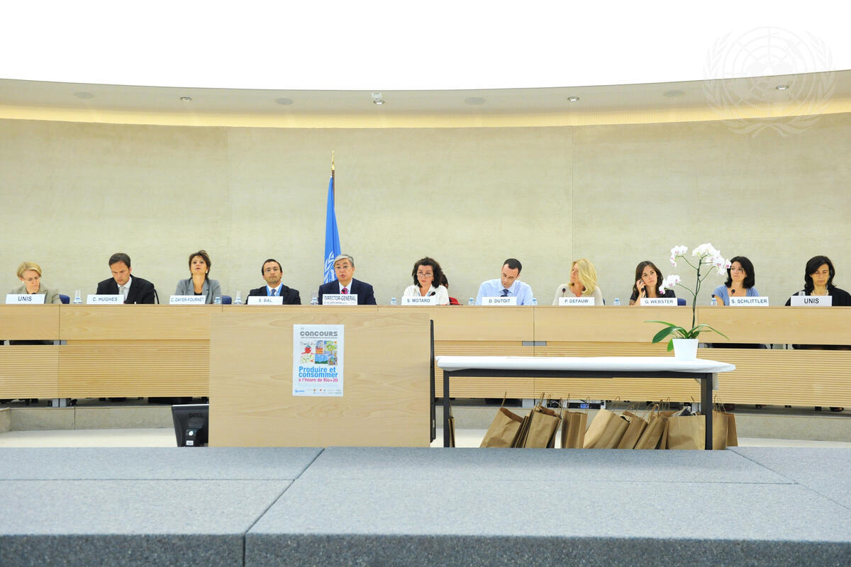 A view of participants, including Kassym-Jomart Tokayev (fifth from left), Director-General of the UN Office at Geneva (UNOG), during UNOG’s event celebrating World Environment Day (5 June).