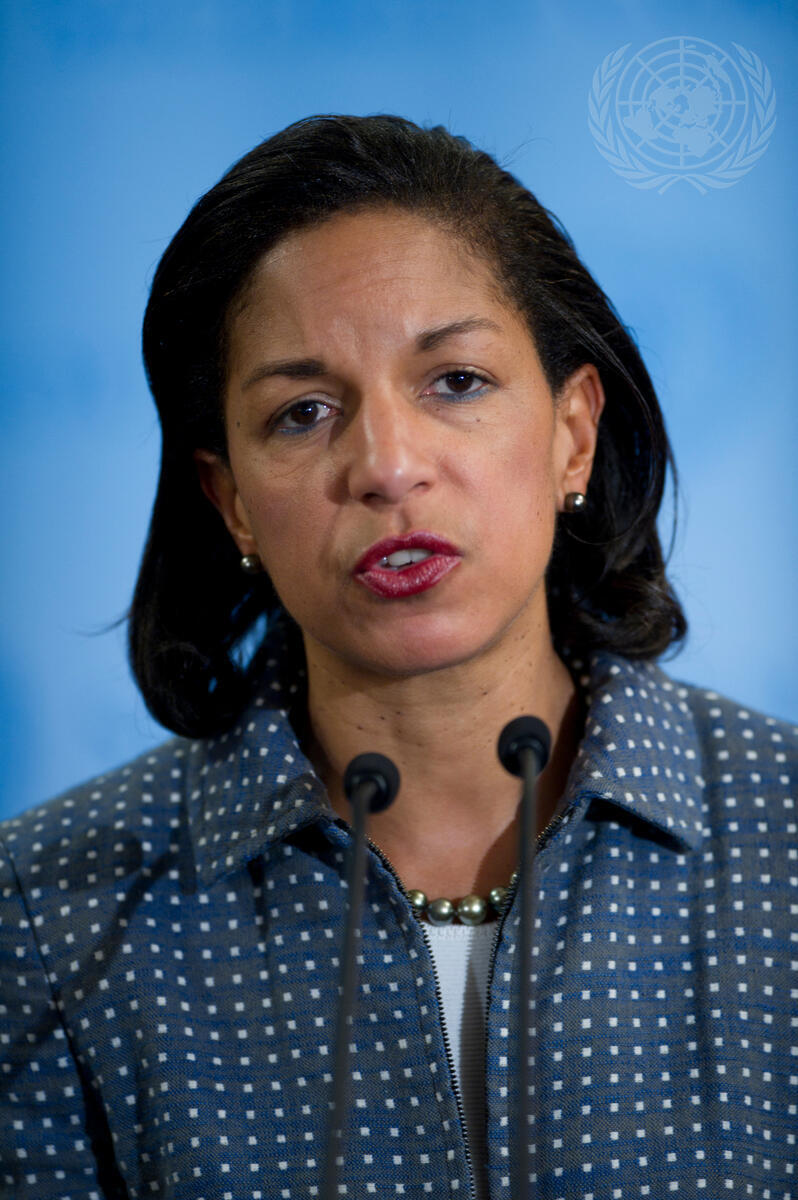 Susan Rice, United States Permanent Representative to the UN, speaks to journalists following a closed-door briefing to the Security Council by Kofi Annan, the Joint Special Envoy of the United Nations and the Arab League for the Syrian Crisis.
