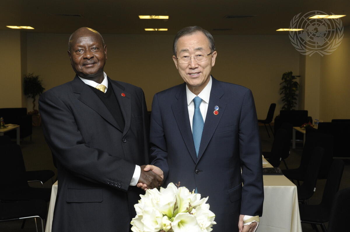 Secretary-General Ban Ki-moon (right) meets with Yoweri Kaguta Museveni, President of Uganda, at the II Istanbul Conference on Somalia, in Turkey.
