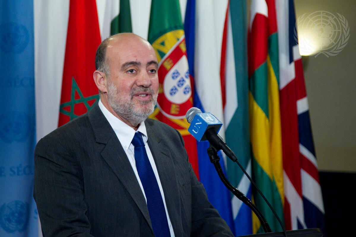 Ron Prosor, Permanent Representative of Israel to the UN, speaks to journalists following Security Council consultations on the situation in the Middle East.