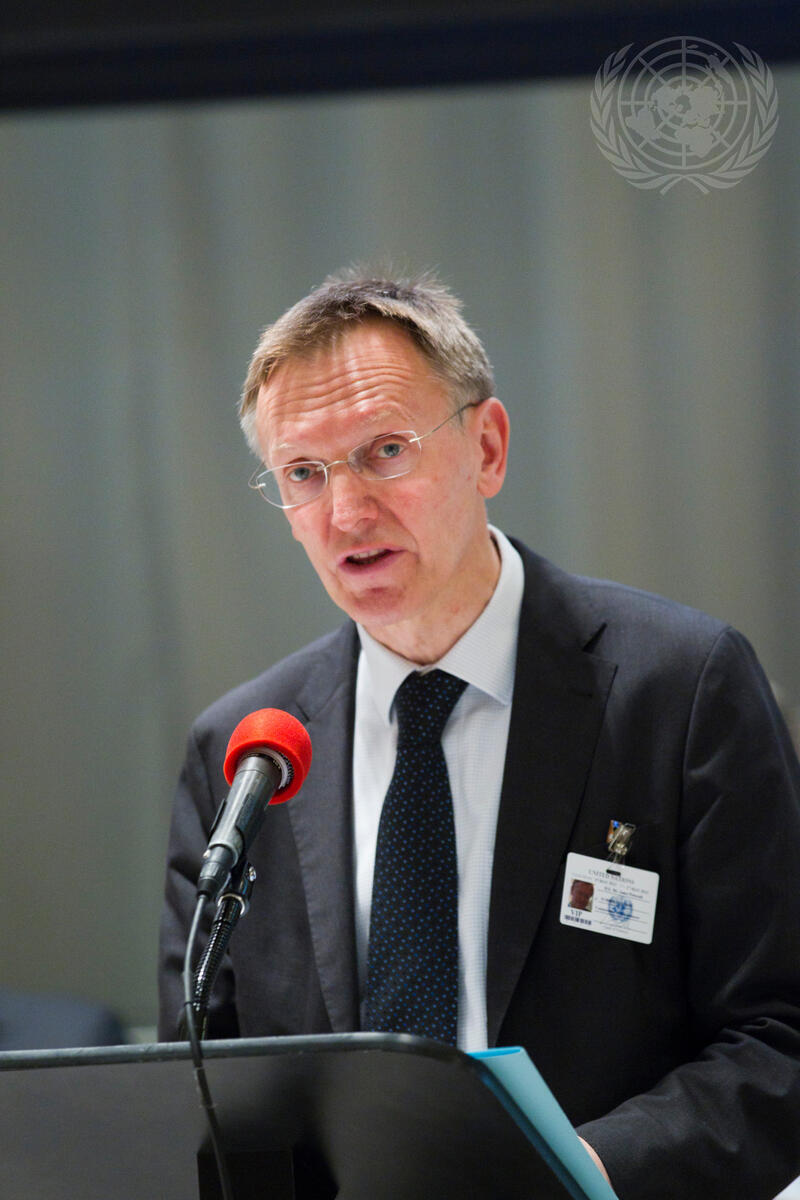 In the Trusteeship Council chamber, Janez Potocnik, European Commissioner for the Environment, addresses the General Assembly thematic debate entitled “Sustainable development and climate change: Practical solutions in the energy-water nexus.”