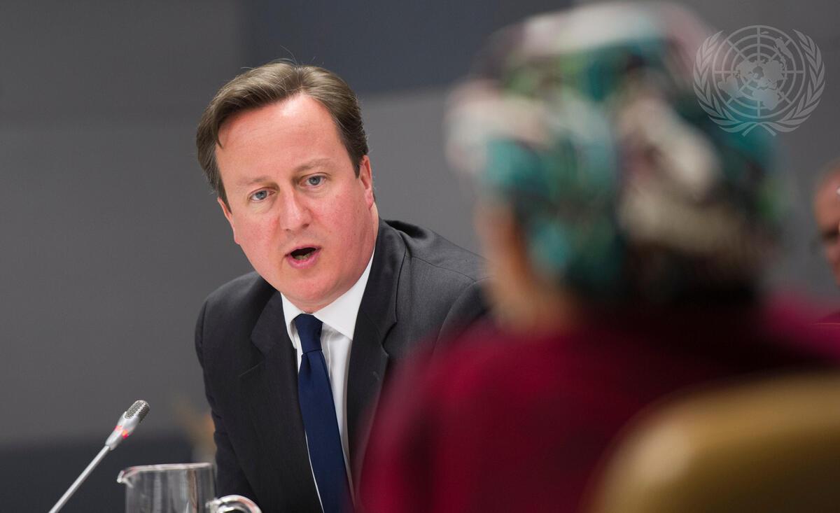 David Cameron, Prime Minister of the United Kingdom and one of the Co-Chairs of the High-Level Panel of Eminent Persons on the Post-2015 Development Agenda, speaks during the panel meeting.
