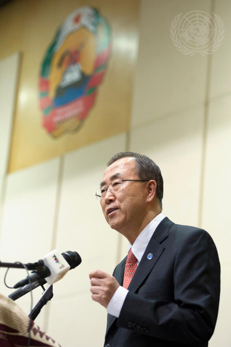 Secretary-General Ban Ki-moon speaks at a roundtable event on the anti-poverty Millennium Development Goals (MDGs) and the post-2015 development agenda, held at the Joaquim Chissano Conference Centre in Maputo.