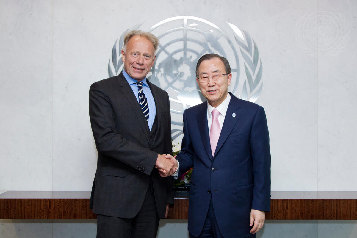 Secretary-General Ban Ki-moon (right) meets with Jürgen Trittin, Chairman of the Parliamentary Group Alliance 90/The Greens in the German Parliament.